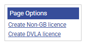 - From the 'Page Options' menu, click the licence type you want to be reviewed.